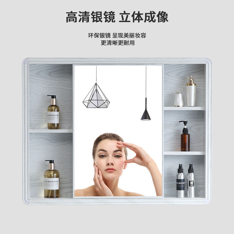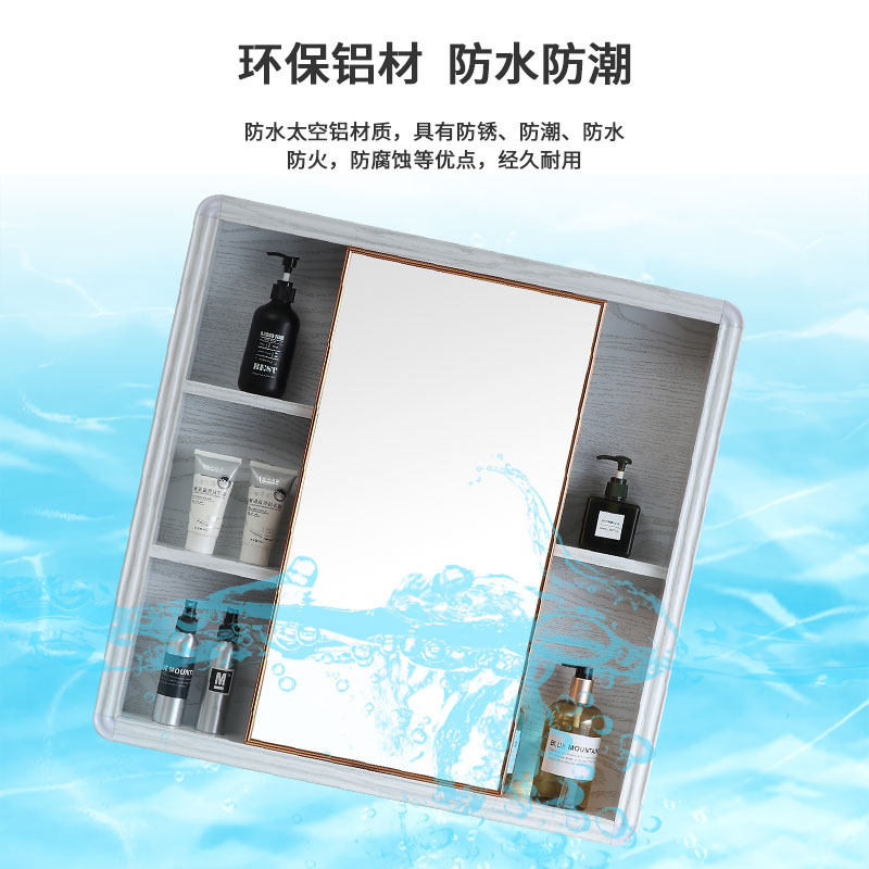 Bathroom Mirror Cabinet Space Aluminum Push-pull Feng Shui Style Hide Makeup Room Mirror Box Wall-mounted cupboard hanging wall-mounted shelve