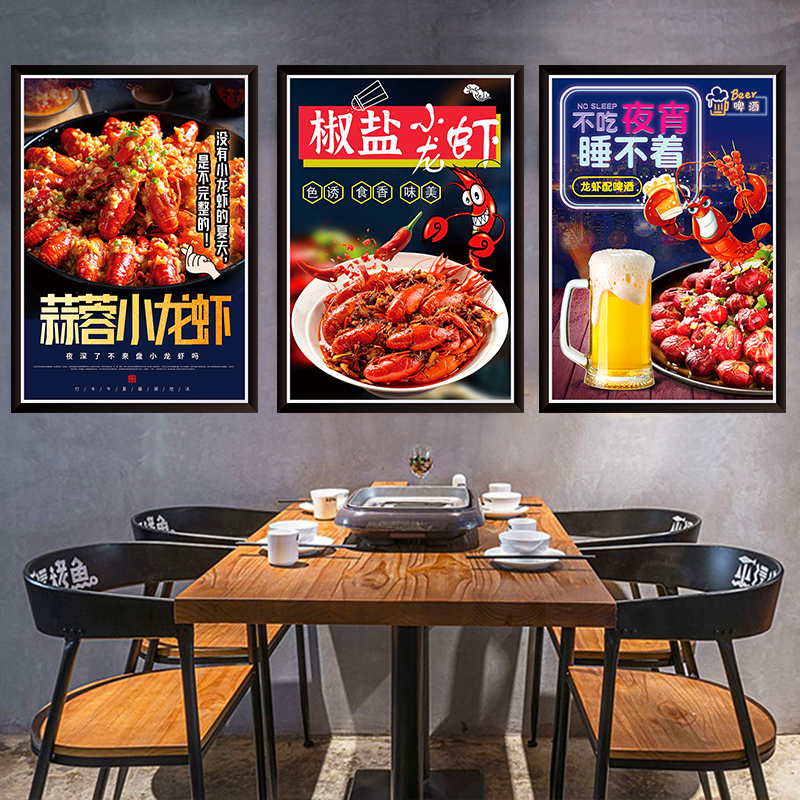 Creative barbecue crayfish poster hotel glass stickers hot pot shop wall decoration advertising window wall stickers