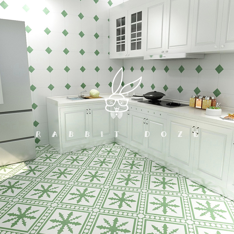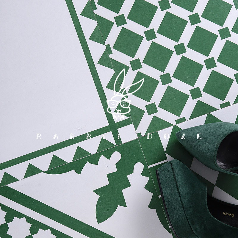 Fresh Nordic Wind Green Geometric Patterns Folk Juku Bar Background Wall Brick Living Room Balcony Wall Brick floor tiles 300300