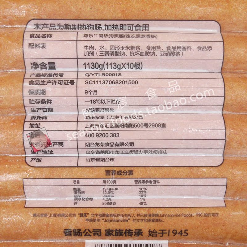 Zunlac Sausage Johannonville Beef Hot Dog Intestinal Popcorn Cheese Crispy Sausage Grilled Sausage Breakfast Sausage