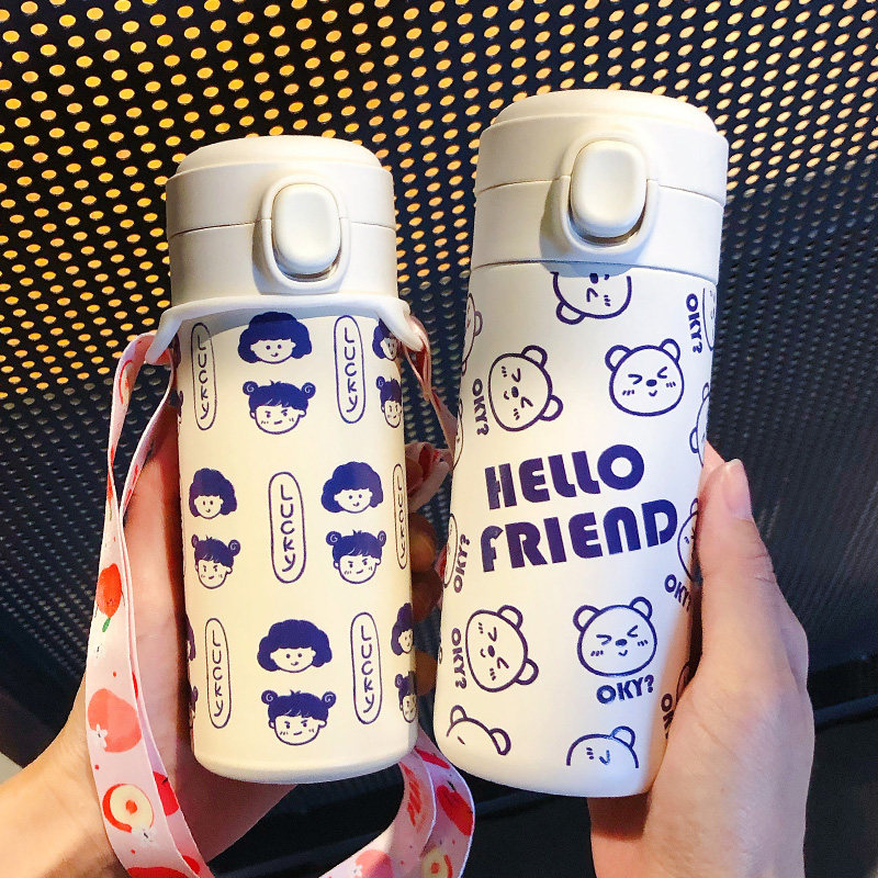 Insulation Cup Female Portable Elementary School Children's Water Glasses Brief Fresheners Young Girls Hearts Wins Wind Children's Cup Children Cute