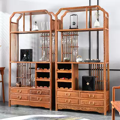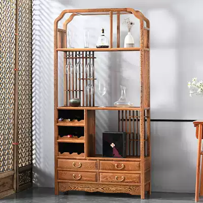 Mahogany furniture Chicken wing wood wine cabinet New Chinese single door wine cabinet Living room Bogu rack wine cabinet Small wall display cabinet