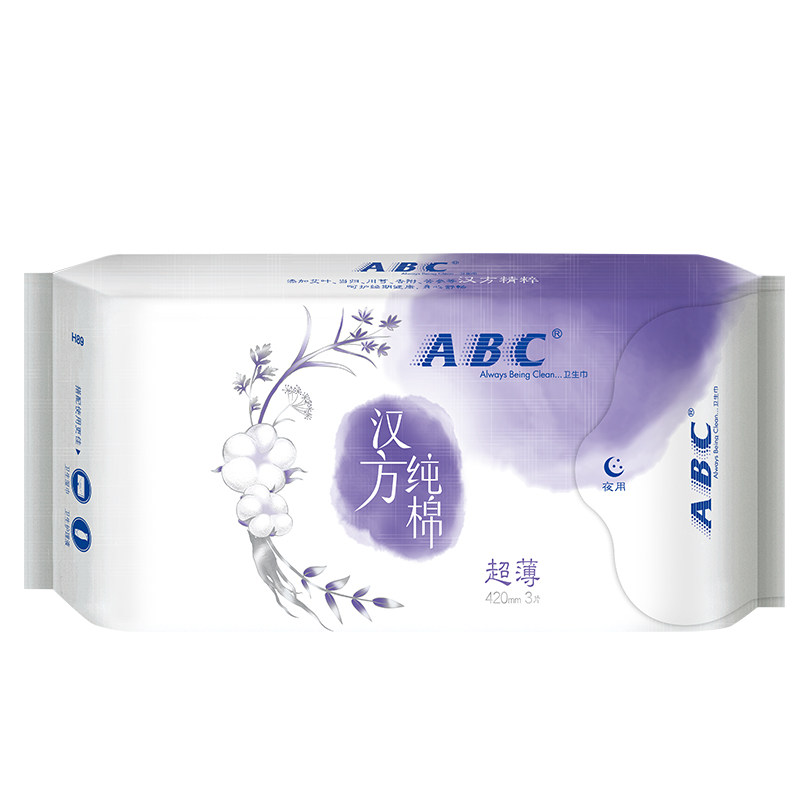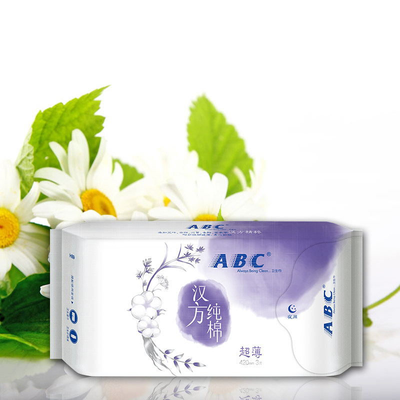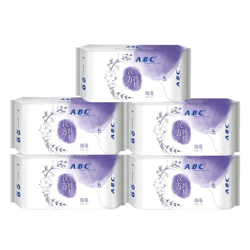 ABC Hanfang pure cotton sanitary napkin 5 packs 15 pieces 0 08cm ultra-thin ultra-long sweet sleep night use 420mm menstrual period women