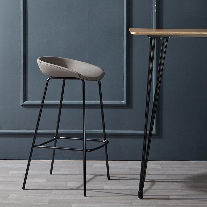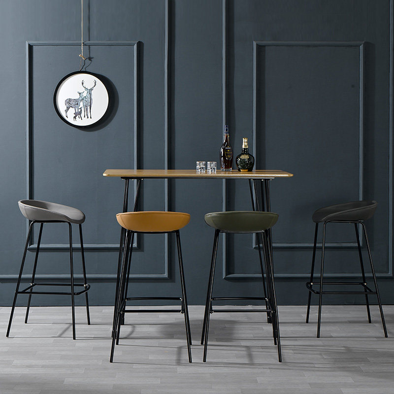 Nordic Iron Art Bar Table Chair Brief Industrial Wind Milk Tea Shop Café High Foot Chair Front Desk Stool Leather Bar Chair