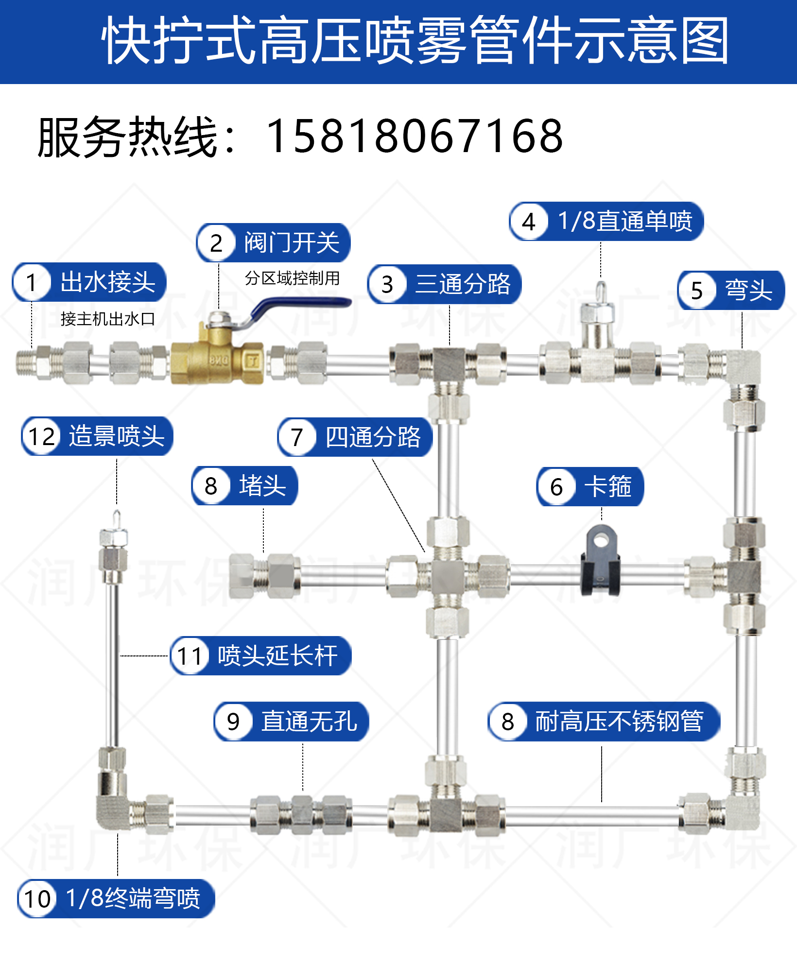 Small sprayer, 50m hose, 40 landscape spray heads, carbon steel luxury host, 50m hose, 40 landscape spray heads, carbon steel luxury host, 50m steel pipe, 40 landscape sprayers