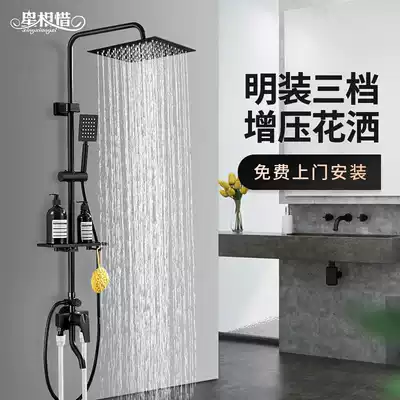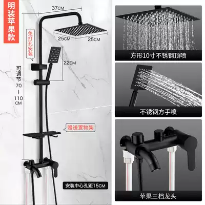 Black surface installation is simple) round stainless steel hand spray (not equipped with black surface loading three gears) fine hole pressurized 8 inch round shower (free installation of black surface loading three gears) 8 inch square shower (Free Safety