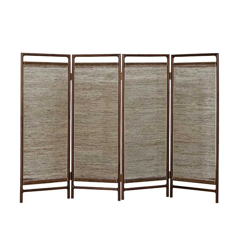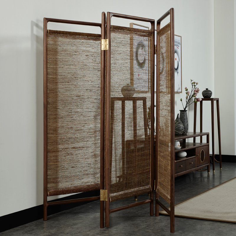 New Chinese-style screen partition porch solid wood tea room black walnut four-leaf folding ash living room Zen Chinese style