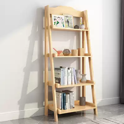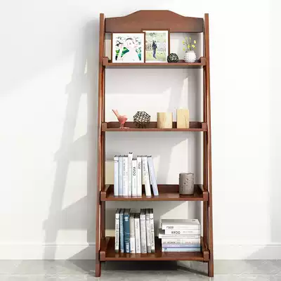 Nordic full solid wood bookshelf shelf Walnut trapezoidal student children's storage shelf Floor-to-ceiling simple simple flower rack