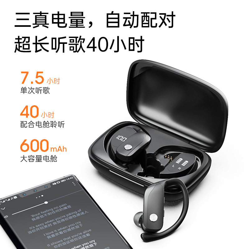 True wireless Bluetooth headphones hanging ear double ear sports 2021 new ultra-long standby high quality business driving Android general men and women running fitness anti-sweat single ear reduction