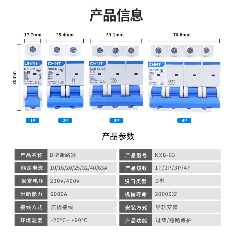 Zhengtai DZ47 upgrade power type small breaker motor empty opening NXB D type 1p2p3p air switch 63a