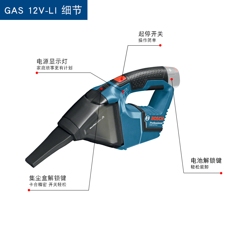 BOSCH Bosch multifunction vacuum cleaner car home handheld small lithium power 12V rechargeable GAS12V-LI