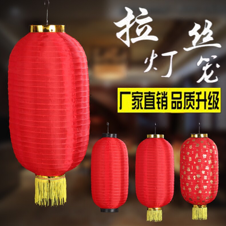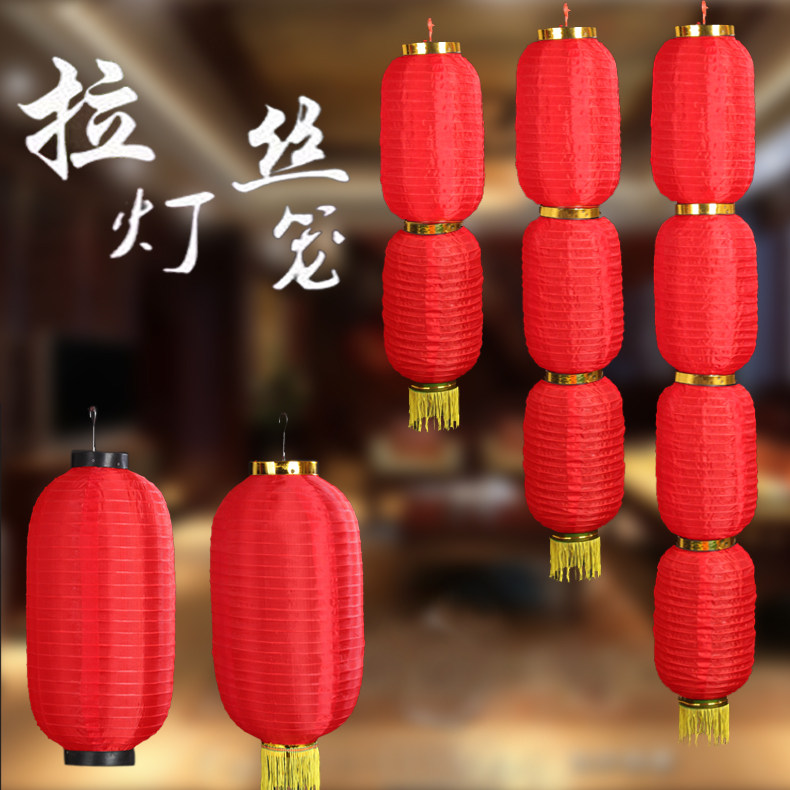 New Year's Great Red series of winter melon lanterns Outdoor waterproof folding silk advertising courtyard streets decorated with long small lanterns-Taobao