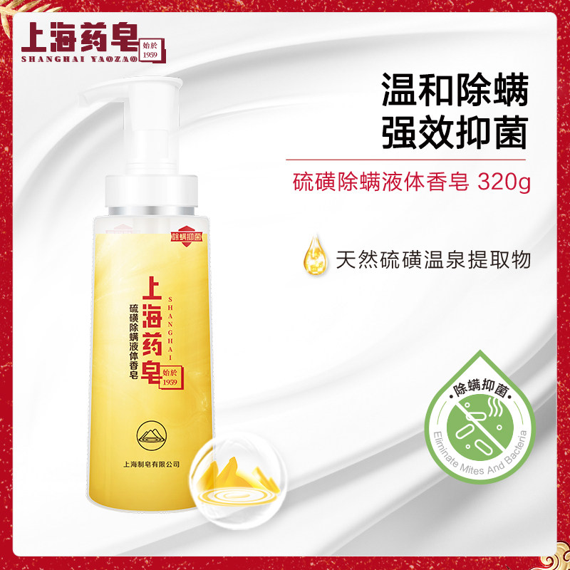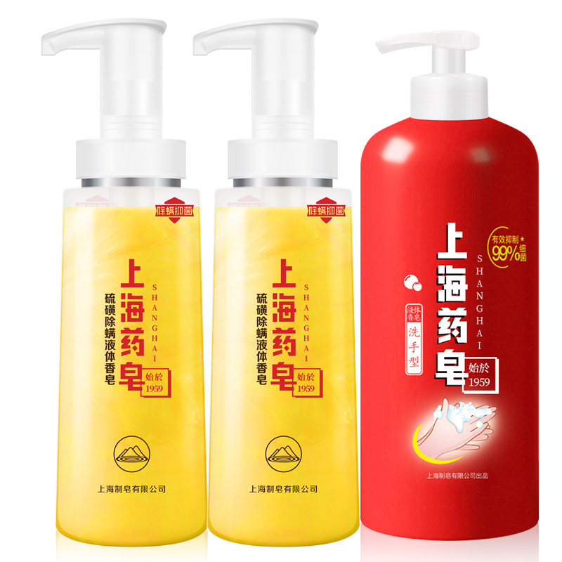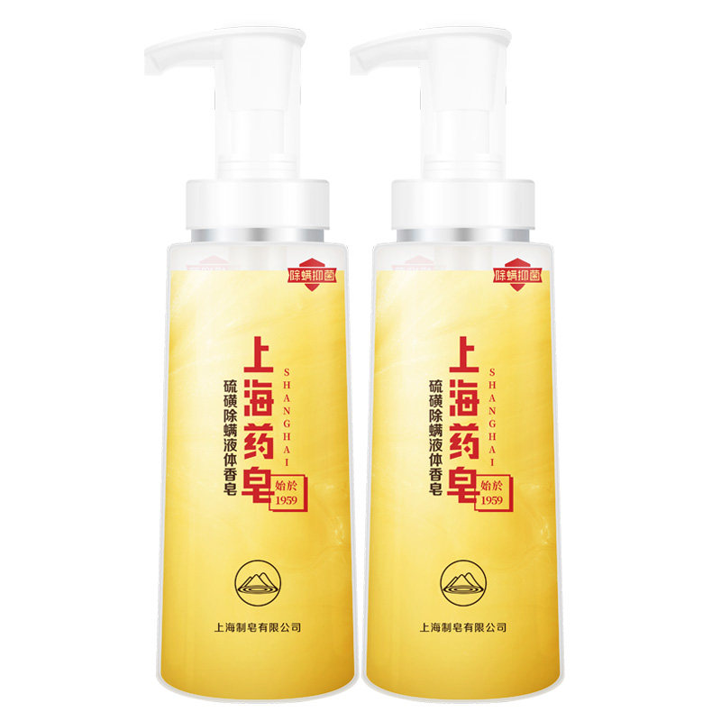 Shanghai medicinal soap liquid sulphur soap 320g * 2 bottles for hand washing liquid sulphur yellow de mite bacteriostatic body lotion and bath lotion for bathing