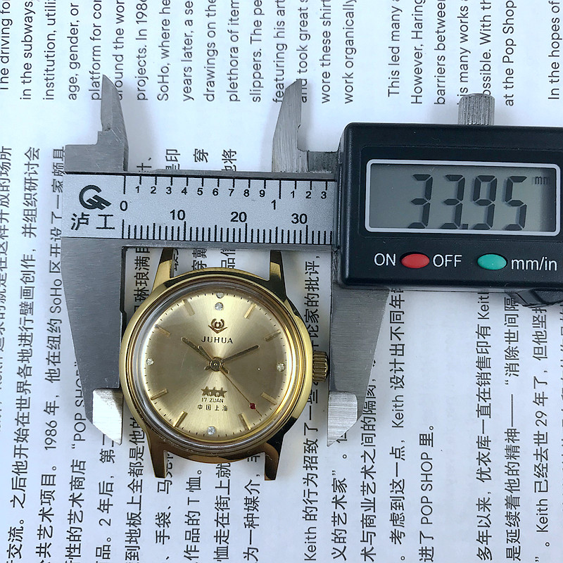 Original stock Shanghai chrysanthemum brand yellow shell yellow face manual mechanical medium-sized watch diameter 33 mm free strap