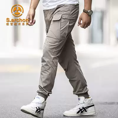 Summer thin drawstring pants men's elastic quick-drying IX7 tactical pants All-match ice silk harem pants sports cigarette tube pants