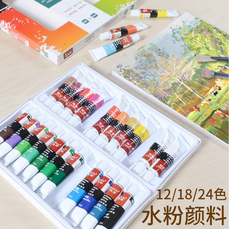 Professional Water Powder Paint Suit Beginners Easel Drawing Board Suit 24 Color Fine Arts Students Special Writing Raw Tools Nontoxic Water Powder Paper 18 Color Painting Items 12 Color Children Students Watercolor Painting Complete-Taobao