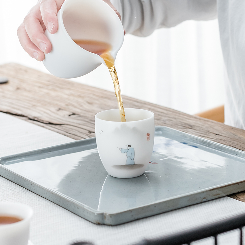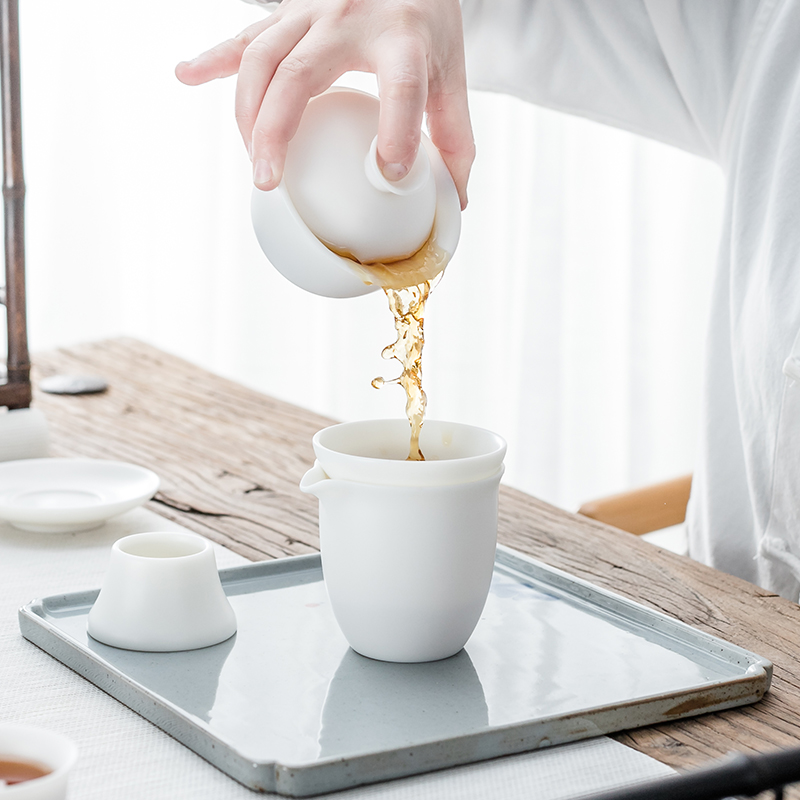 Dehua white porcelain tea set Handmade cover bowl teapot Household simple Kung Fu tea cup Sheep fat jade white porcelain tea set