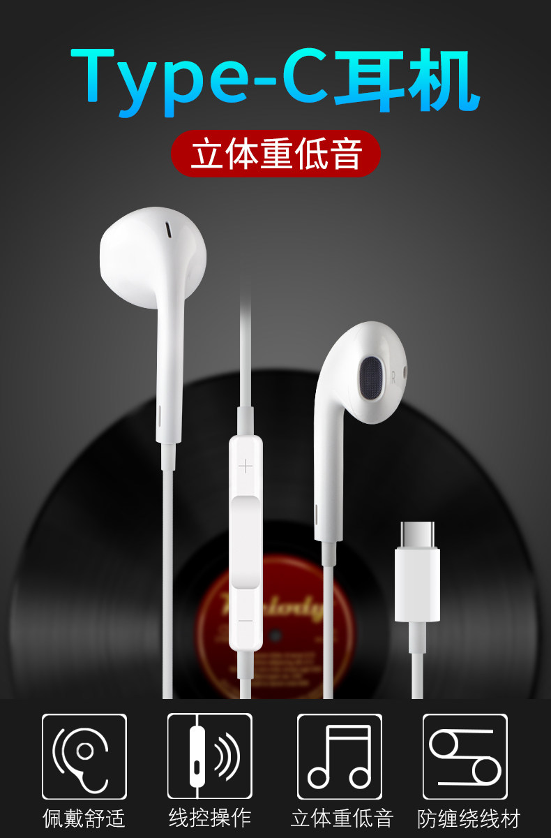 Type-c universal headphones apply Huawei VIVO Xiaomi OPPO Honor mobile phone flat charging mouth headphone manufacturer