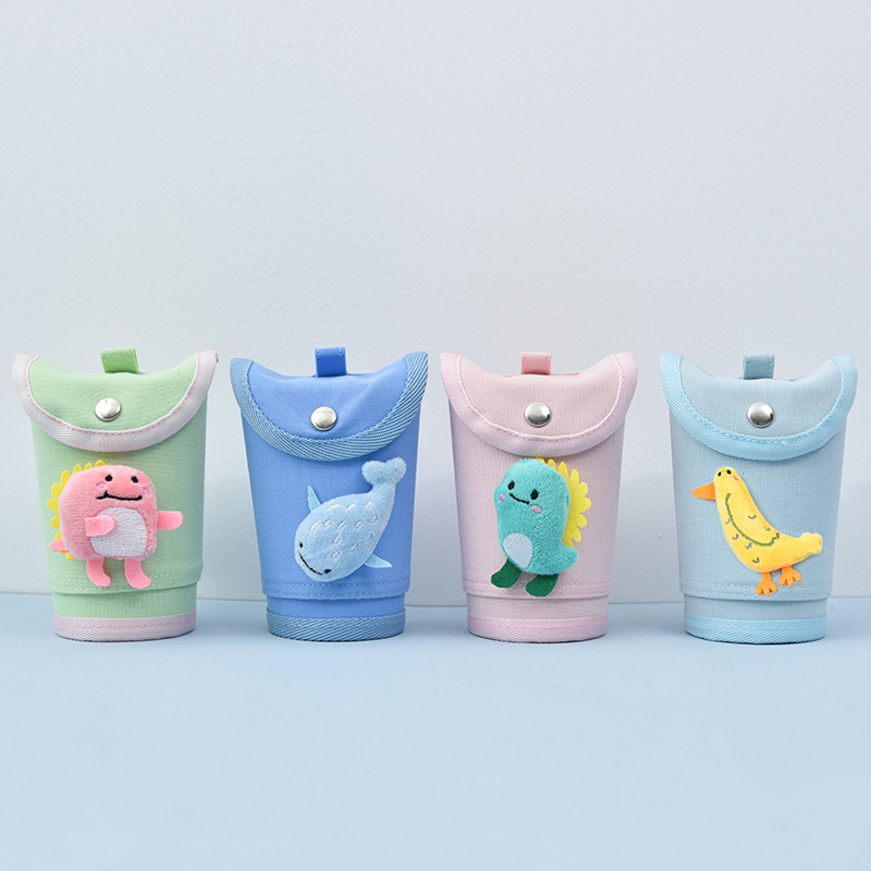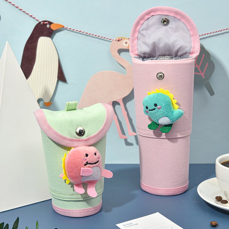 Retractable pencil case pen holder type Korean small fresh canvas round salt stationery bag ins trendy girls and children students with cute girl heart pencil case large capacity simple creative personality funny