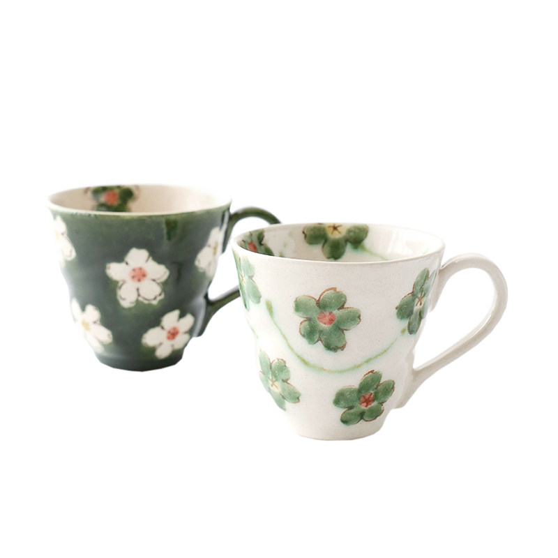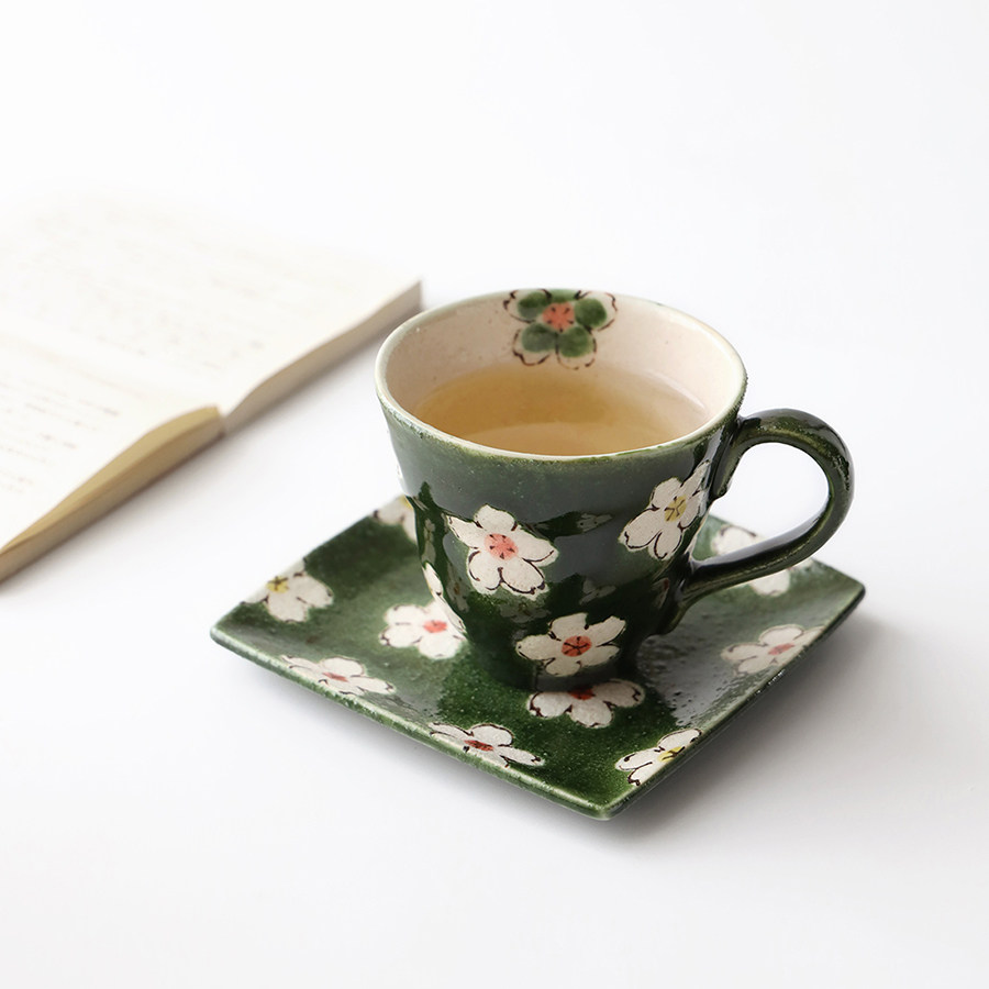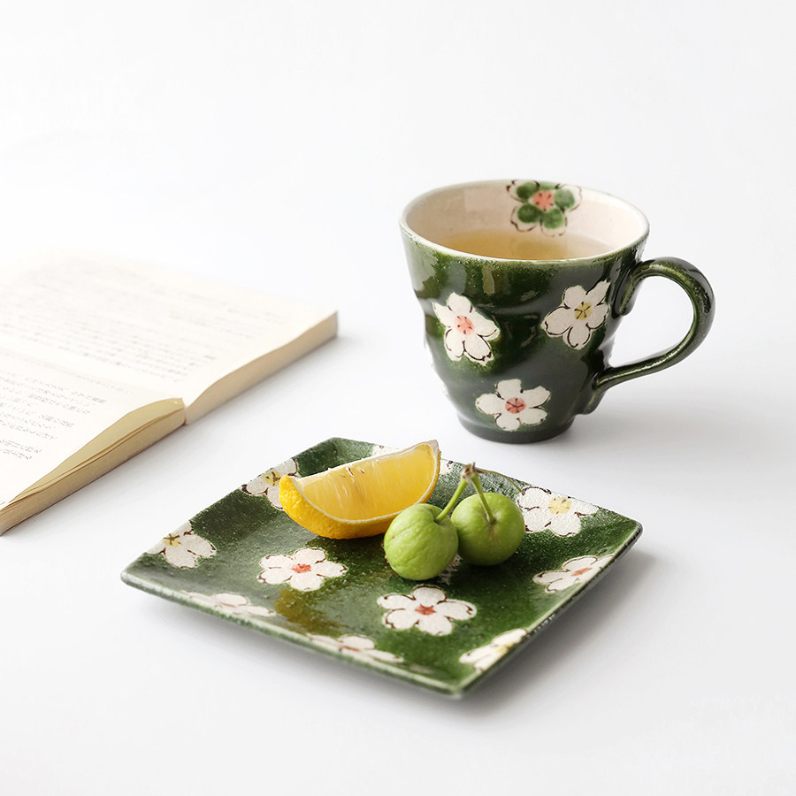 Japan Import Sehouseholds Burn Small Clear New Flowers Ceramic Heat Resistant Mark Cup Saucer Coffee Milk Water Cup Breakfast Tray