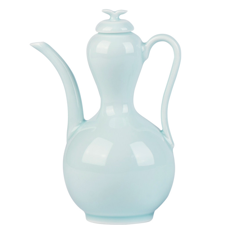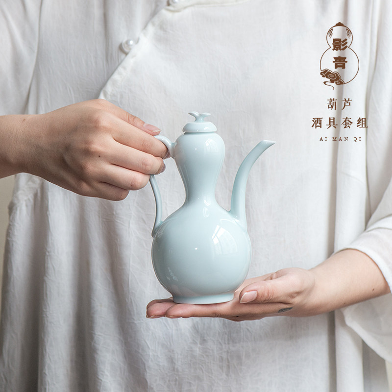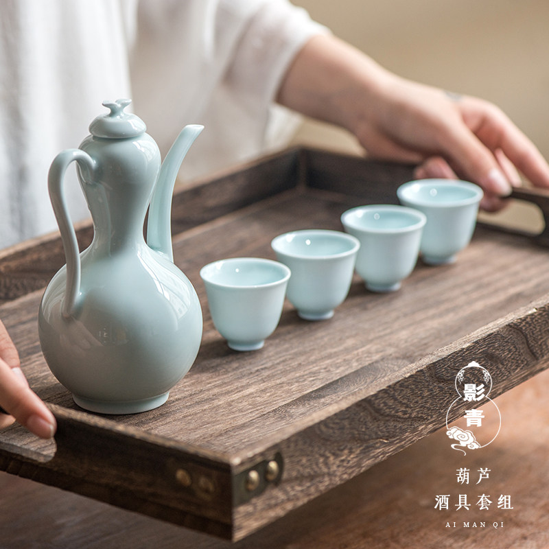 Chinese-style imitation Song Hutian kiln gourd wine set antique shadow green ceramic sobering pot Fulu water injection holding pot wine glass