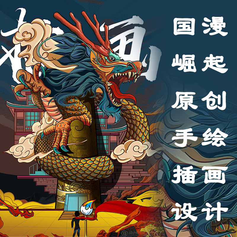 Illustration design Guochao original hand-painted product packaging watercolor character cartoon avatar commercial custom contract