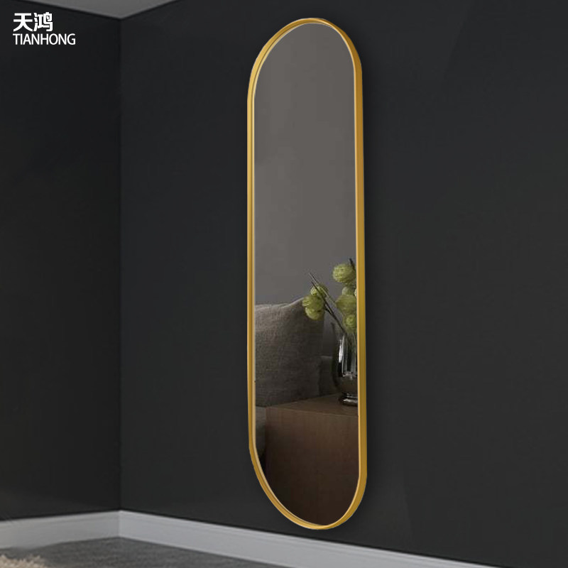 Light luxury full-length mirror golden frame bedroom full-length mirror wall hanging home full-length mirror wall stereo mirror ins wind
