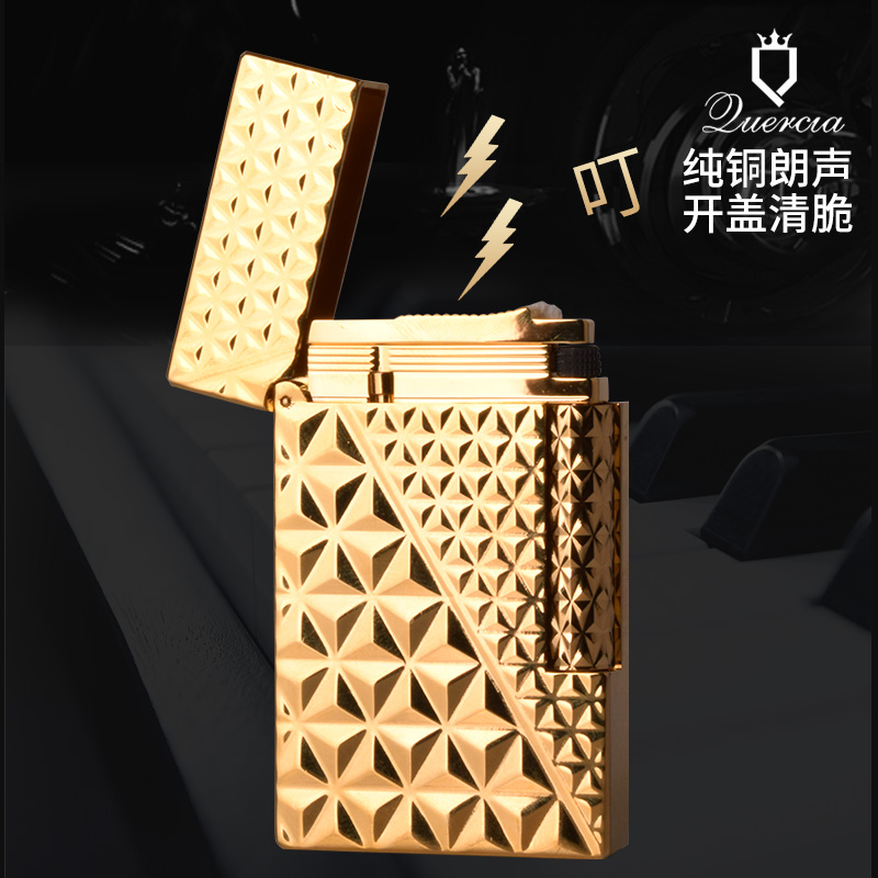 Quercia Langsheng kerosene lighter diamond pattern steel tone classic piano tone high-end men's gift pure copper