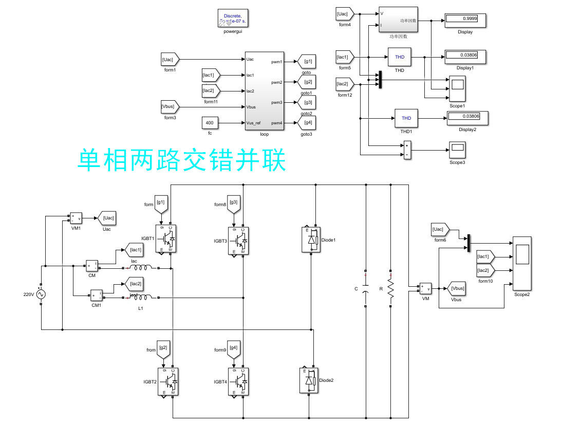 Single-phase totem pole PFC interleaved parallel totem single-phase rectifier double closed loop high power factor low THDI