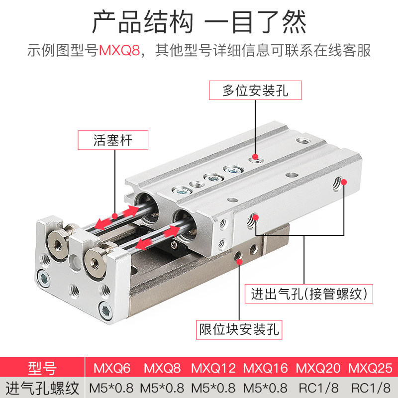 HLQ precision linear guide rail pneumatic slide cylinder MXQ6 8 12 16 20-30 40 50 75 100