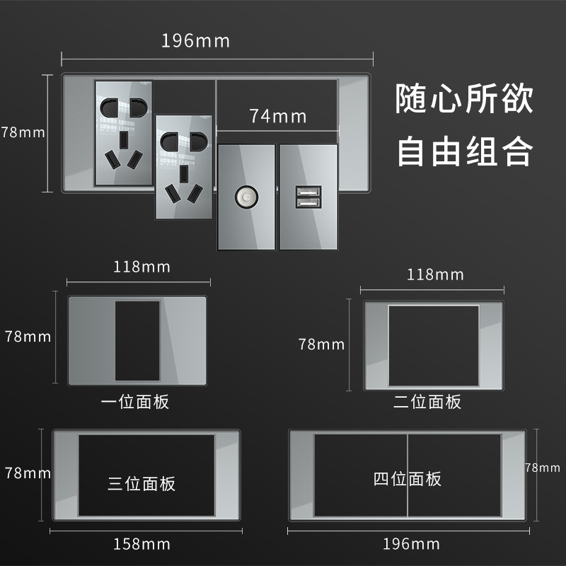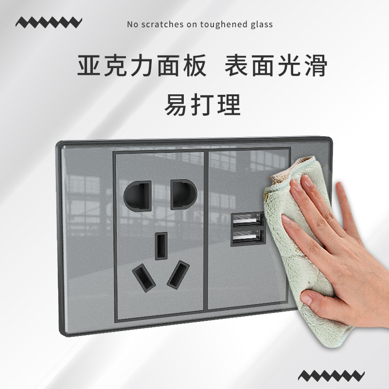 Jiadi 118 switch socket mirror rectangular nine holes twelve holes acrylic socket gray household wall
