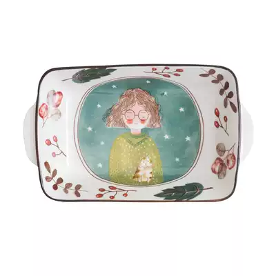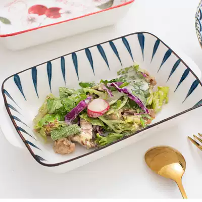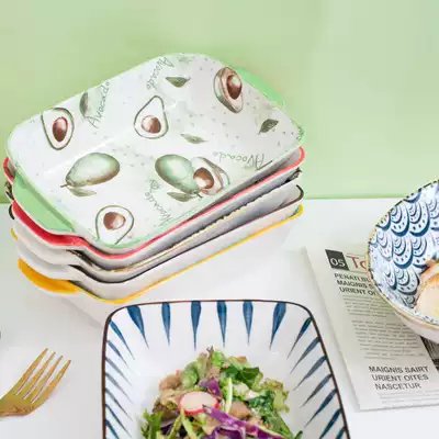 Japanese-style creative cheese gratin rice bowl Household ceramic tableware Net red binaural rectangular baking tray for microwave oven
