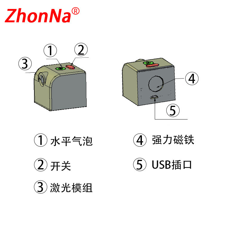 Upgraded version of strong red light small laser crosshair mini portable level locator USB Direct charge lithium battery