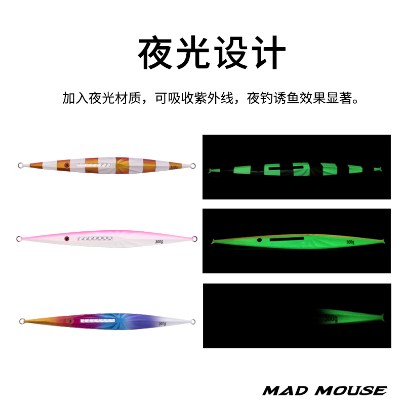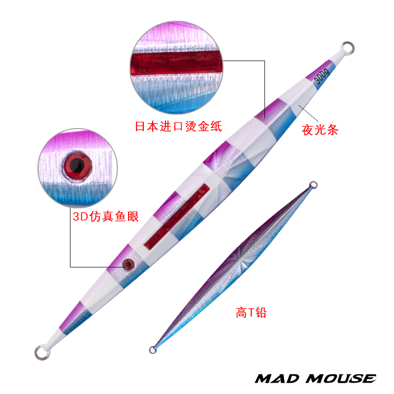 MADMOUSE new red arrow luminous speed sinking long iron plate bait 300 350 400g deep sea boat fishing south oil