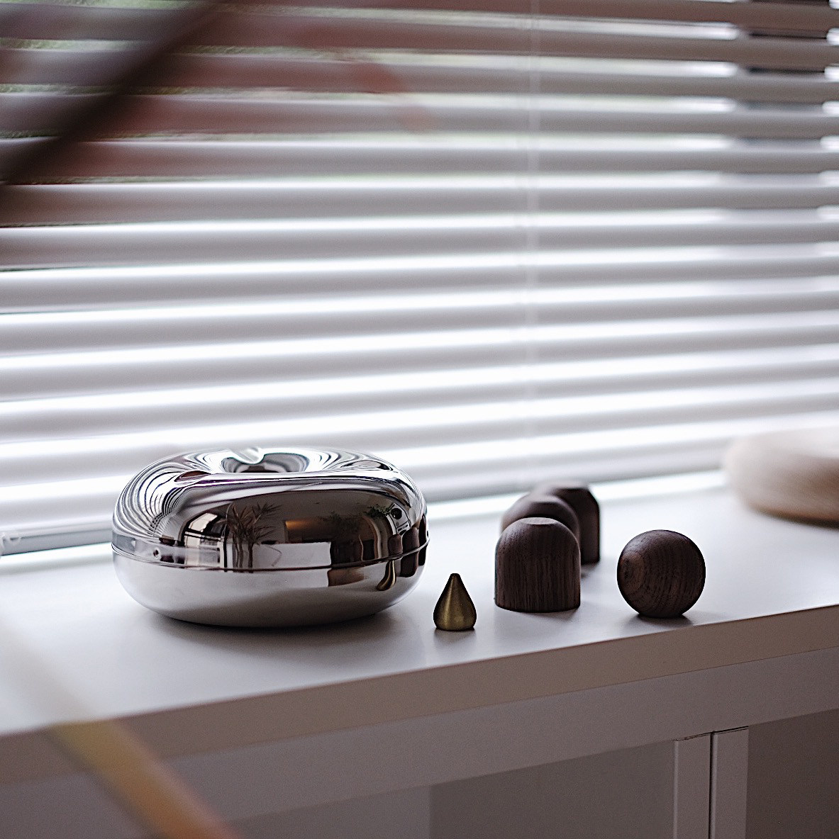 JFdesign FUMI original sculpture ashtray line fragrance in minimal stainless steel high foot magnetic suction seat