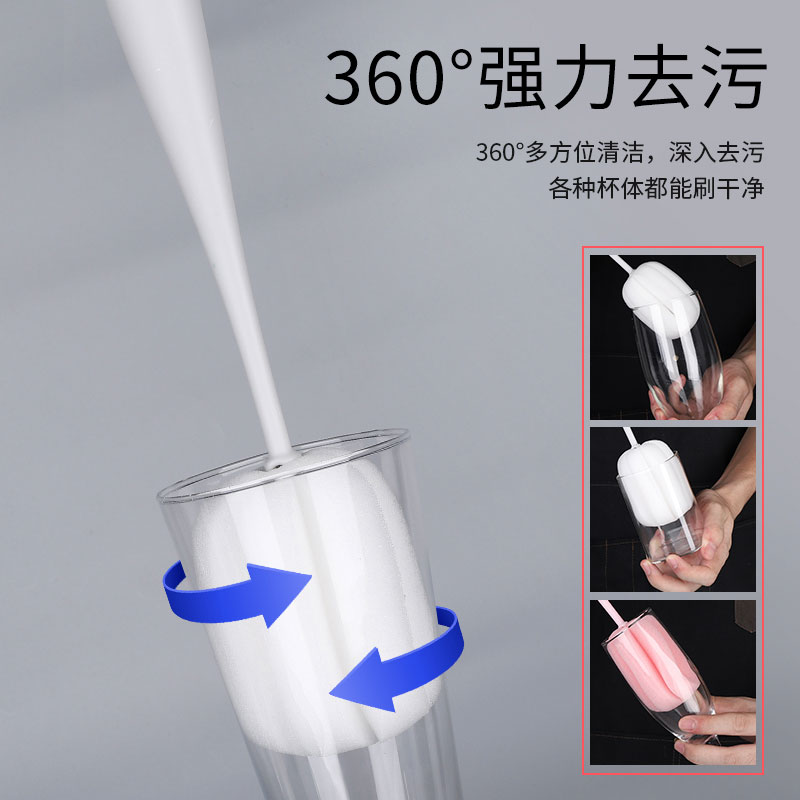 Sponge long handle brush insulated cup tea cup cleaning brush bottle cleaning brush 360 degrees of rotation wash the cup deity