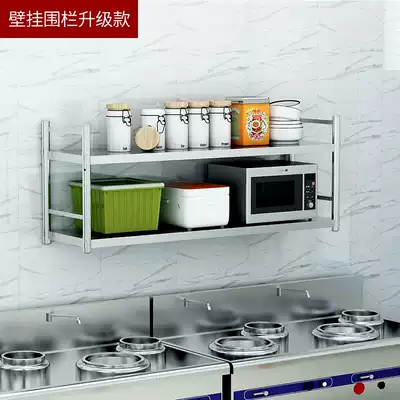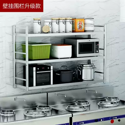 Kitchen rack stainless steel wall mounted with fence 3 layers wall hanging wall microwave seasoning storage wall hanger