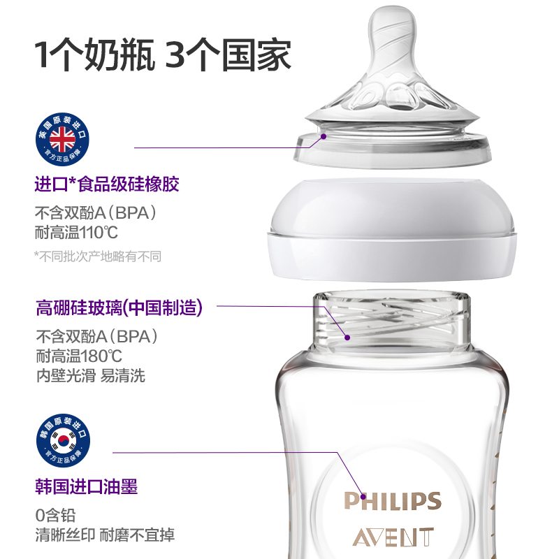 Philips' new Anyi glass feeding bottle newborn baby 0 to 3-6 months imported anti-choking gas-Taobao