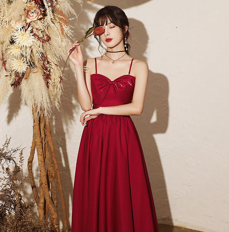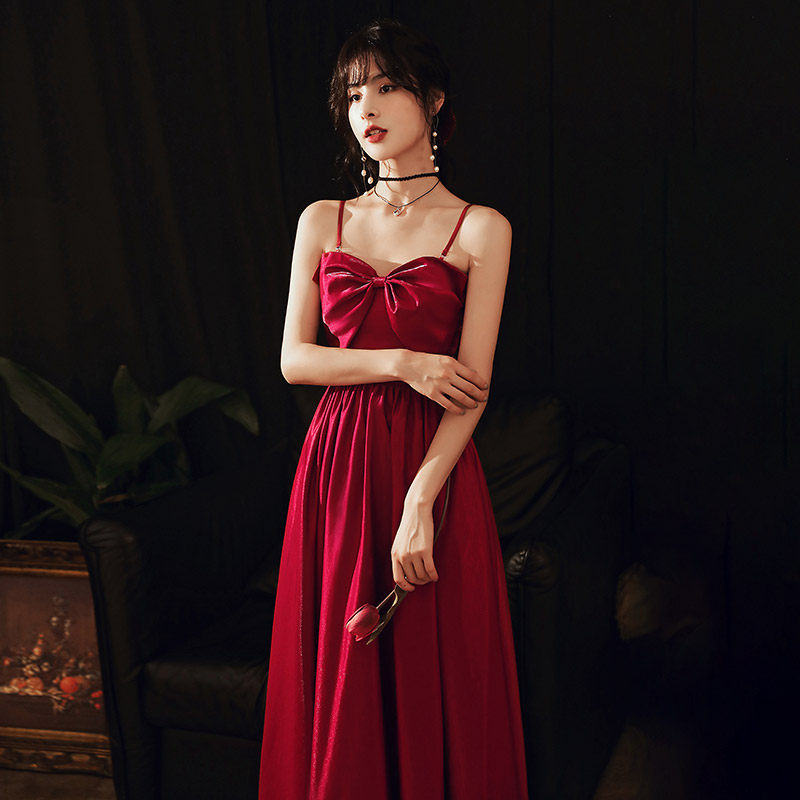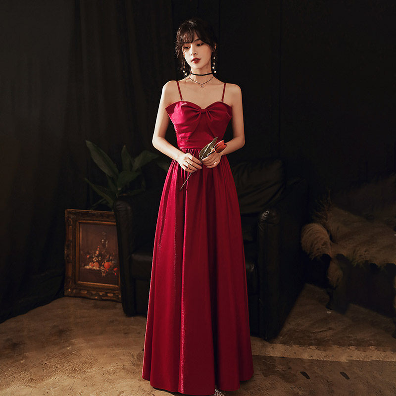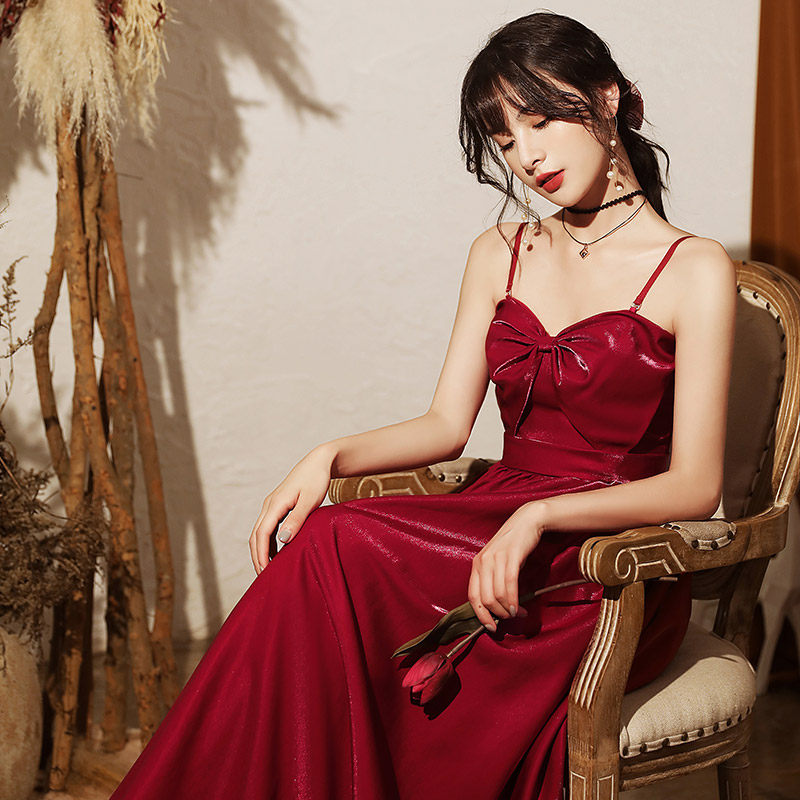 Toast 2022 new wine red bridal small child betrothed banquet gown Temperament Slim Harness Ocean Dress