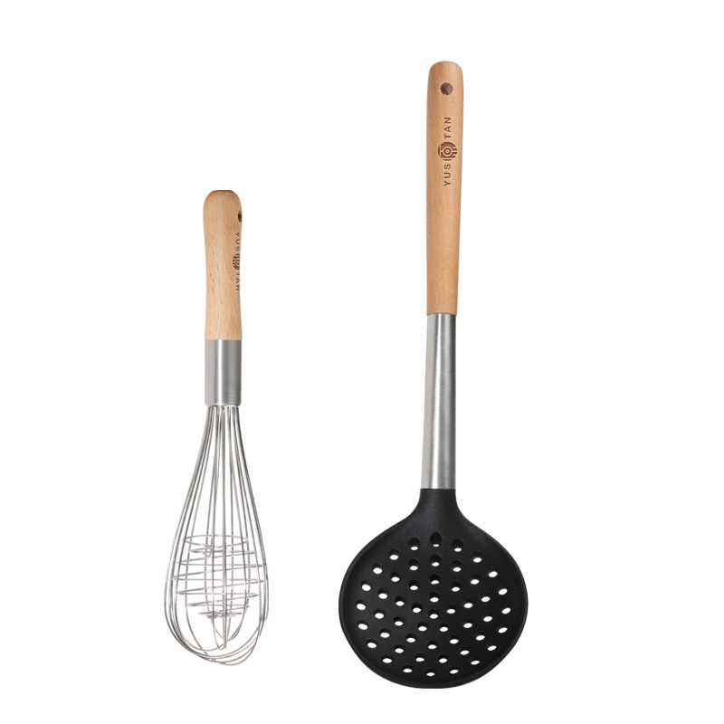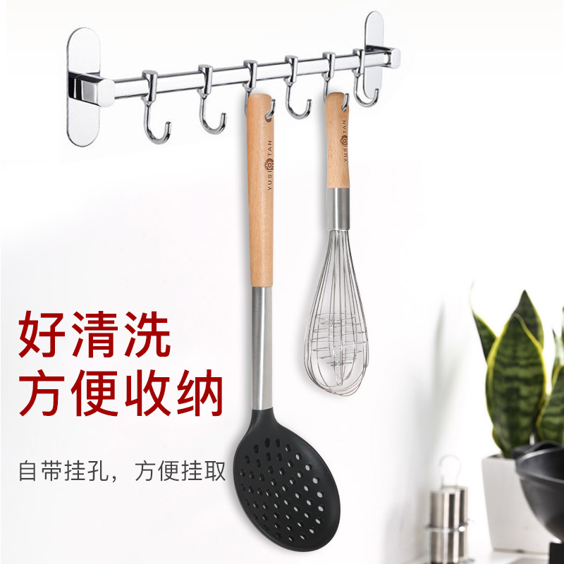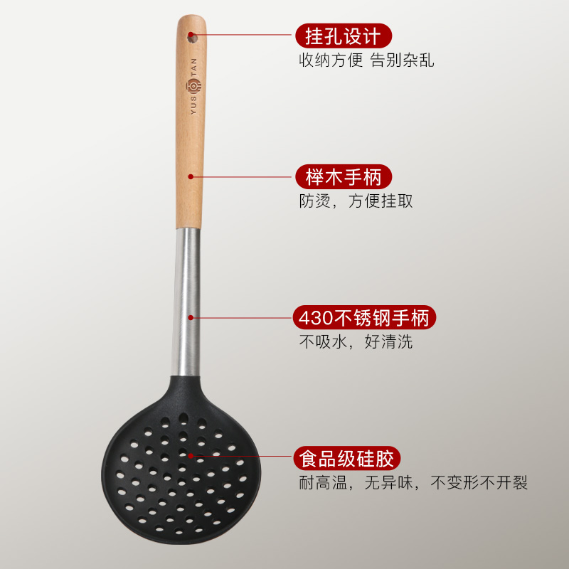 Original Son Too Silica Gel Leak Spoon Filter Spoon 304 Stainless Steel Whiter Anti-Burn Wood Handle Home Kitchen Unhurt Pan