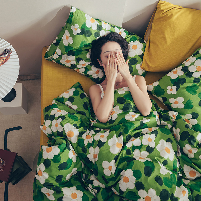 French hand-painted wind cotton four-piece cotton bedding girl heart dormitory sheets three-piece quilt cover bed hats