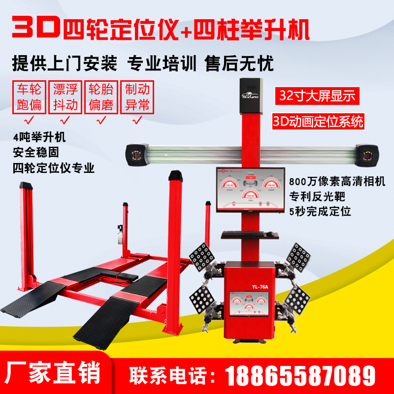 Automotive 3D four-wheel positioner equipment full set of Jizo large scissors four-column lift manufacturers direct sales of the whole field supporting