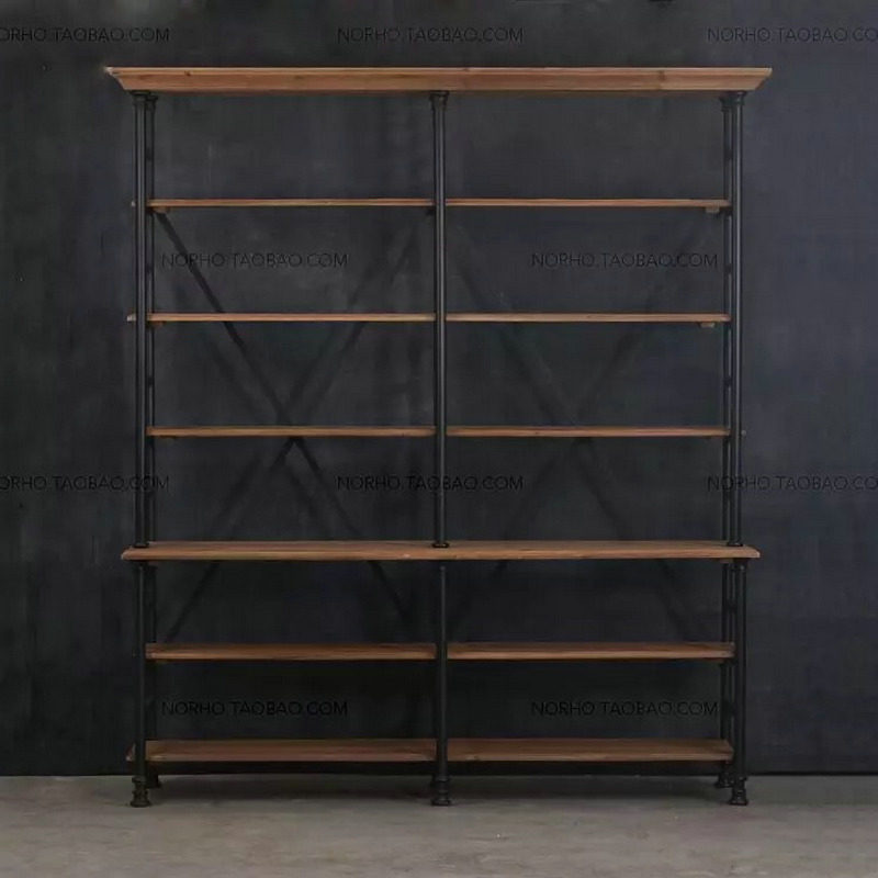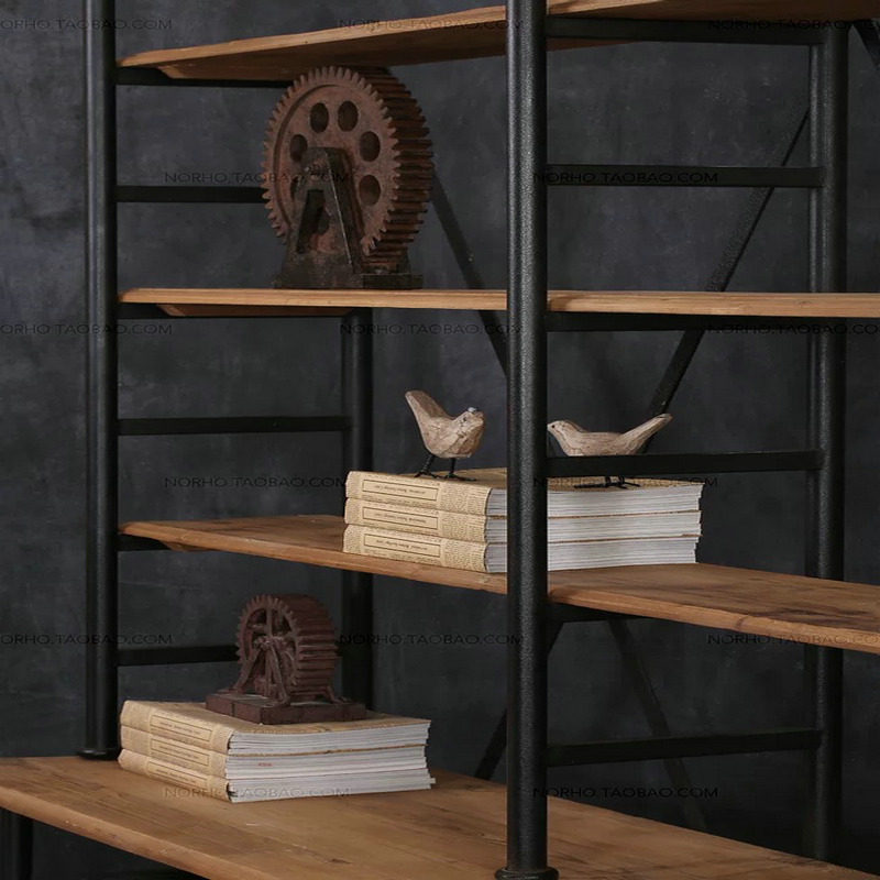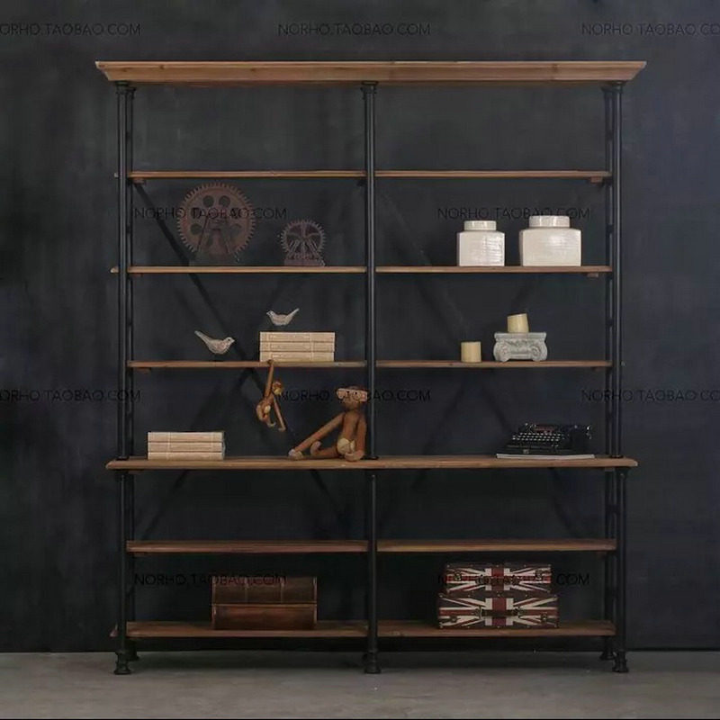 Loft American wrought iron rack solid wood retro bookshelf floor bookcase living room display shelf multi-layer storage shelf