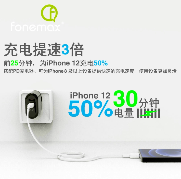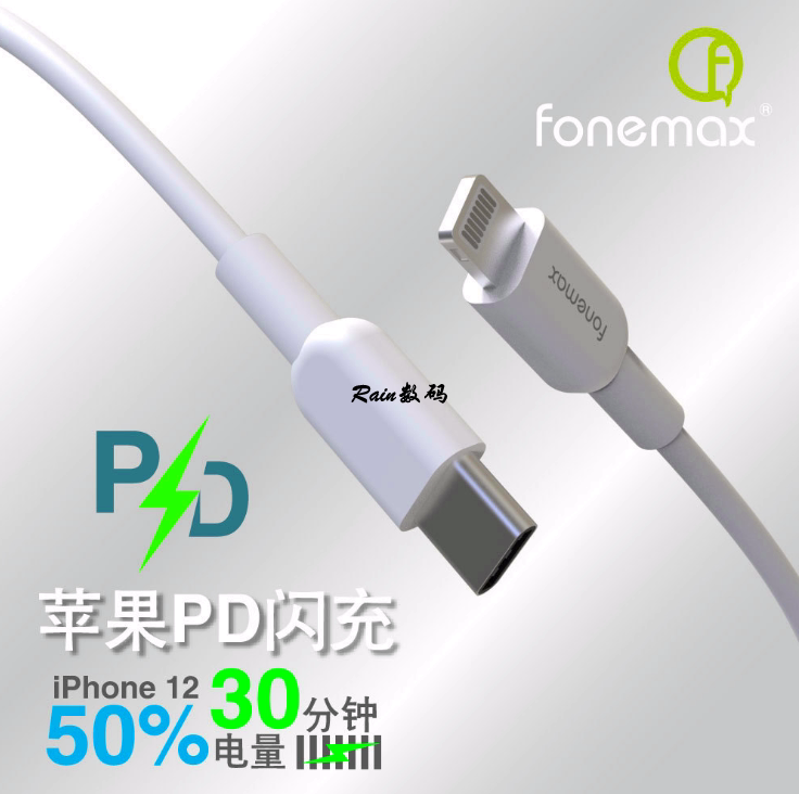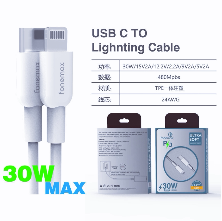 Fonemax white TPE one-piece molding suitable for Apple PD fast charge data cable iPhone13 14 XR XS