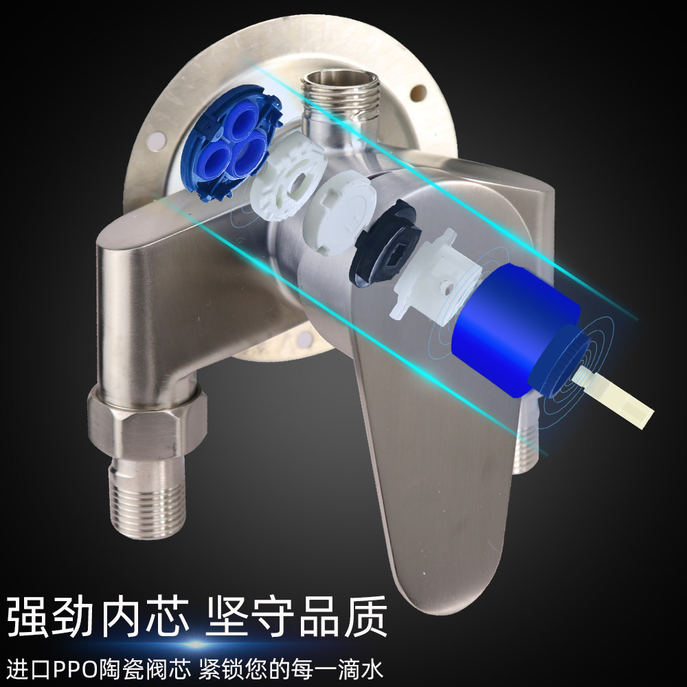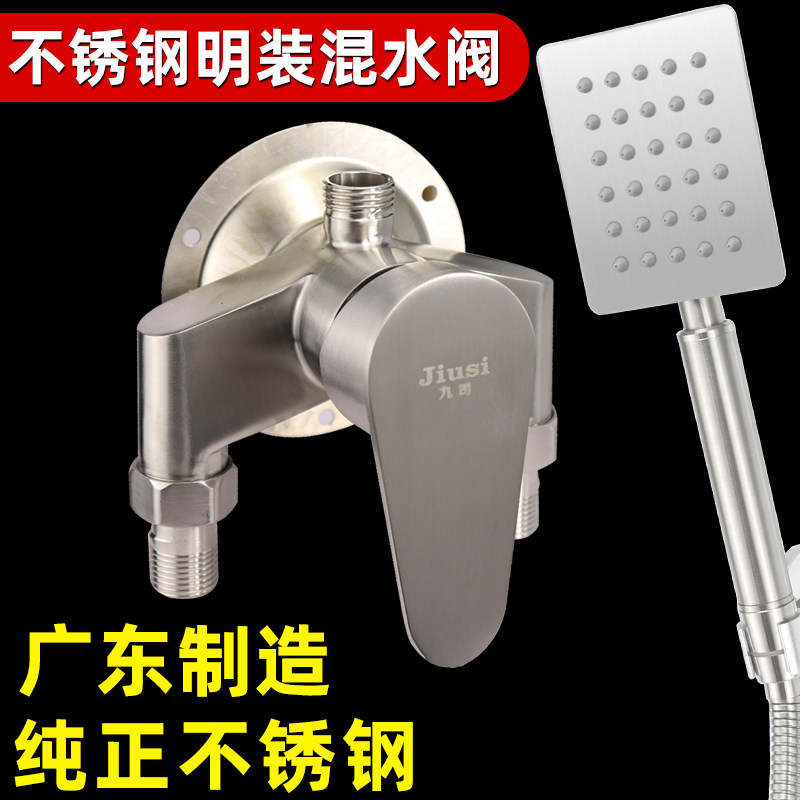 Open-mounted mixed water valve 304 stainless steel hot and cold shower faucet solar shower room switch surface-mounted shower set