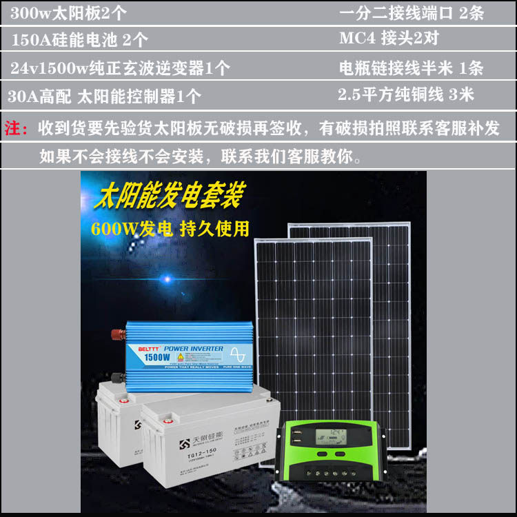 24v600w solar power generation set outdoor breeding monitoring household photovoltaic power supply equipment battery system