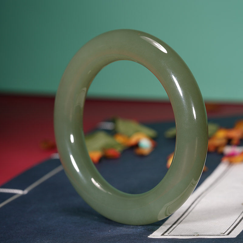 Double height and field jade ware natural Qinghai material Qingbaiyu Lake Water Xinjiang green bracelet lady jade round strip bracelet
