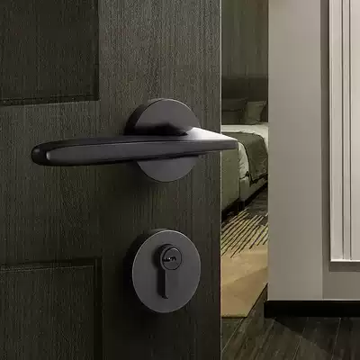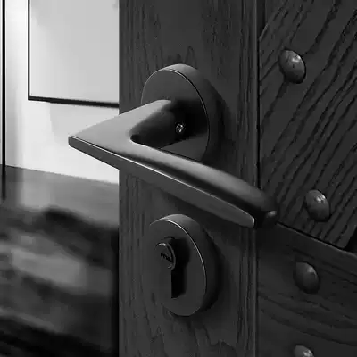 Nordic modern magnetic door lock black two-piece home bedroom silent door handle room universal wooden door lock