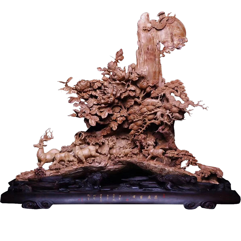 Old Mountain Honolulu Sandalwood Sandalwood Carvings of the Buddha Guanyin Flower Bird Landscape Buddhist Sculpture Golden Silk Nana Cliff Bergen Sculpture Pendulum