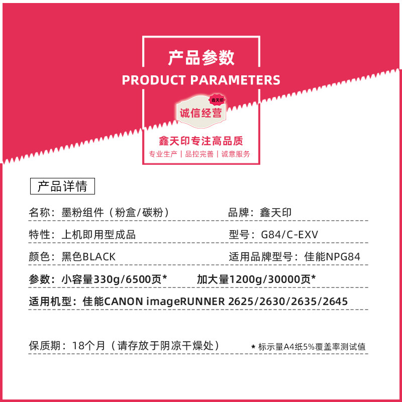 Xin Tian printing applies to the Canon 2625 Powder Box iR2635 NPG84 imageRUNNER 2630 Copy Machine Carbon Powder G84 2645 CANO